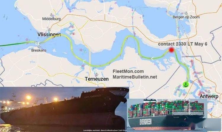 當(dāng)?shù)貢r間5月6日23:30,長榮海運(yùn)旗下一型集裝箱船與油輪相撞,曾掛靠多個國內(nèi)海運(yùn)港口。一艘名為“EVER GLOBE”、運(yùn)力為20160TEU的超大型集裝箱船在荷蘭Bocht van Bath前的西斯海爾特河道與油輪“KRITI EMERALD”相撞。所幸本次事故并未造成任何的傷亡以及漏油。
