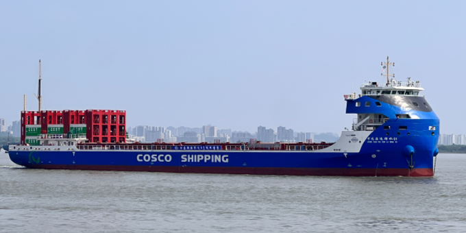本次航行“中遠(yuǎn)海運(yùn)綠水01”將在揚(yáng)州港裝載97個(gè)集裝箱,自此該輪南京到洋山的運(yùn)營航線將增加中途港—揚(yáng)州港,航線也正式變更為南京到揚(yáng)州到洋山往返。