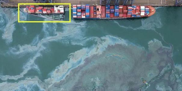 據(jù)報(bào)道,在香港葵涌集裝箱碼頭對(duì)開海面出現(xiàn)大面積油污,疑似一艘集裝箱船加油期間發(fā)生泄漏漏油。油污覆蓋4號(hào)、6號(hào)、7號(hào)碼頭對(duì)開海面,部分已飄向青衣及昂船州。