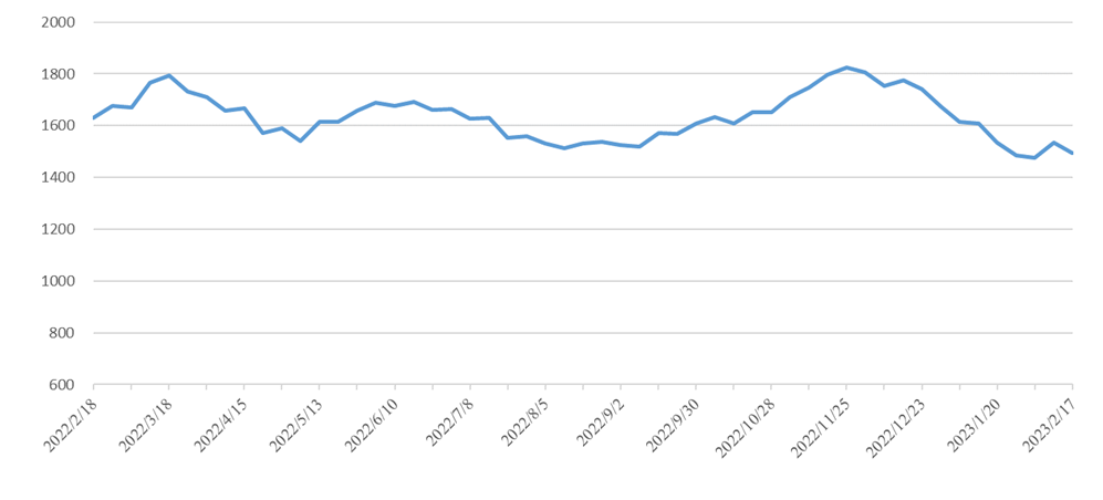 內(nèi)貿(mào)集運(yùn)指數(shù)小幅回調(diào),本期(2023年2月11日至2月17日)中國(guó)內(nèi)貿(mào)集裝箱運(yùn)價(jià)指數(shù)(XH·PDCI)報(bào)1493點(diǎn),較上期內(nèi)貿(mào)集裝箱運(yùn)價(jià)指數(shù)環(huán)比下跌42點(diǎn),跌幅2.74%,同比下跌137點(diǎn),跌幅8.4%。其中華南、華北、華東、東北、山東區(qū)域指數(shù)下跌,福建區(qū)域指數(shù)上漲;四條流向指數(shù)全面上漲。6個(gè)區(qū)域子指數(shù)“1漲5跌”,4個(gè)流向子指數(shù)“1漲3跌”。