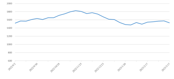 內(nèi)貿(mào)海運(yùn)需求保持穩(wěn)定,本期(2023年3月18日至3月24日)中國(guó)內(nèi)貿(mào)集裝箱運(yùn)價(jià)指數(shù)小幅回落