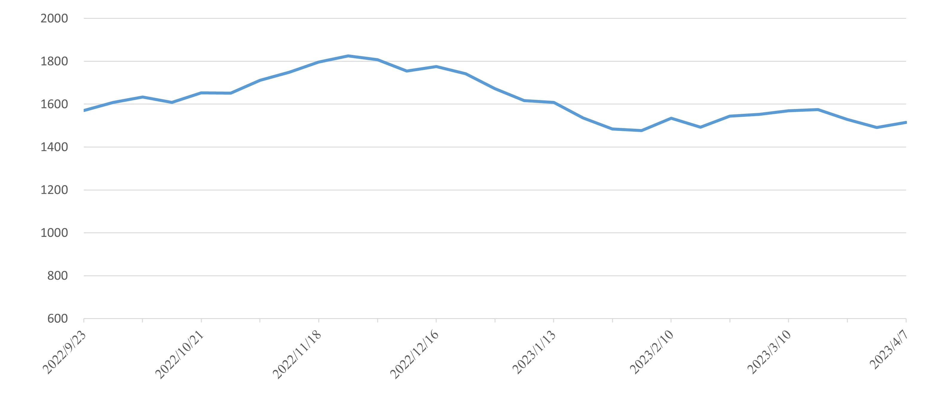 此外,華東指數(shù)報收1585點,環(huán)比下跌49點,跌幅3.00%;山東指數(shù)報收1388點,環(huán)比上漲85點,漲幅6.52%;福建指數(shù)報收1323點,環(huán)比下降78點,跌幅5.57%。